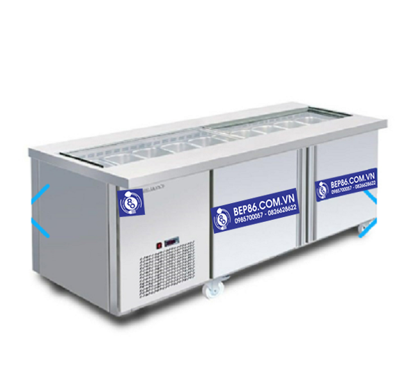 - Phần mặt bàn gồm có các khay đựng thực phẩm có cả nắp đậy kèm chức năng giữ lạnh.